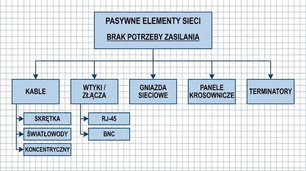 - Każda sieć komputerowa składa się z elementów pasywnych i aktywnych.