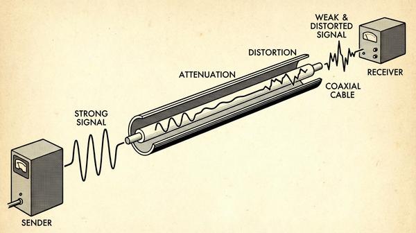 - Każdy sygnał elektryczny podróżujący przez kabel ulega zjawisku zwanemu **tłumieniem** (attenuation).