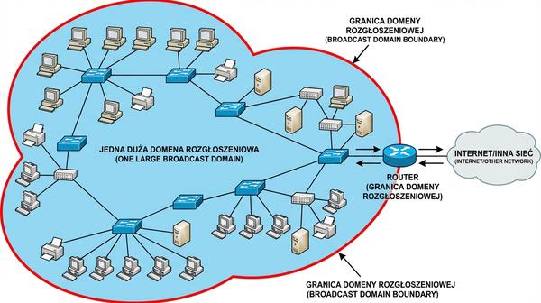 - Granicę domeny rozgłoszeniowej stanowi dopiero router (urządzenie warstwy 3).