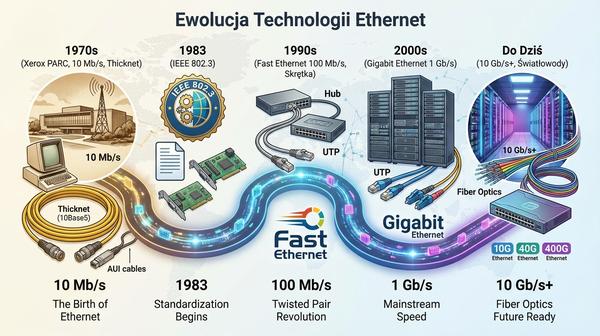 - Zaczniemy od samych podstaw, cofając się do lat 70., aby zrozumieć, jak narodziła się technologia, która dziś stanowi kręgosłup globalnej komunikacji – sieć Ethernet.