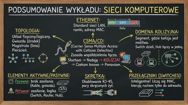 - Przejście od pasywnego medium do inteligentnych urządzeń pośredniczących było kamieniem milowym, który pozwolił technologii Ethernet nie tylko przetrwać, ale i zdominować świat sieci lokalnych na kolejne dziesięciolecia.